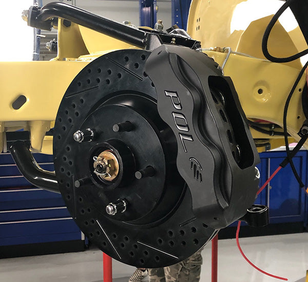 POL - 13" Black Out Track 4, disc brake conversion by Baer takes your braking performance to the next level. Works with 1964-72 A-body, 1967-69 F-body and 1968-74 X-body stock OE spindles as well as Heidts, Fatman & Ridetech 2" drop spindles. Billet alluminum hubs come packed with Redline synthetic grease and include billet dust caps. The POL Branded Baer 4 piston T4 calipers include D.O.T. compliant dust and weather seals.